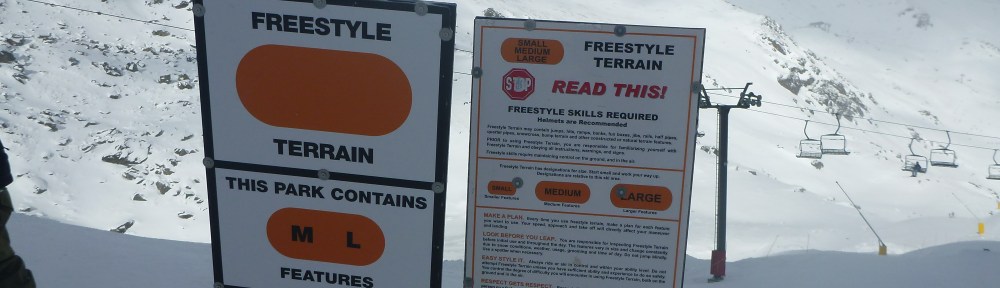 When skiing or riding in terrain parks, you cannot always see the landing, feature may have been changed, the grooming may be uneven. It is always a good idea to Scope the landing and warm up first. Here’s how.
